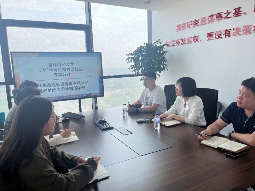 为了深入贯彻落实党中央、国务院“稳就业”“保就业”的决策部署,认真落实全国、全省2023届普通高校毕业生就业创业工作会议精神,落实吉林省高校毕业生就业工作决策部署,扎实推进“访企拓岗促就业”交流活动,加快学院人才培养,拓宽毕业生就业渠道,深化对接企业用人需求,提升毕业生就业质量。2023年5月26日,澳门十大网投平台排行党总支副书记郭妍、团委副书记续成林和辅导员周博先后与吉林省格远市场调研咨询有限公司和吉林省政通管理咨询有限公司开展“访企拓岗促就业“专项行动座谈会。