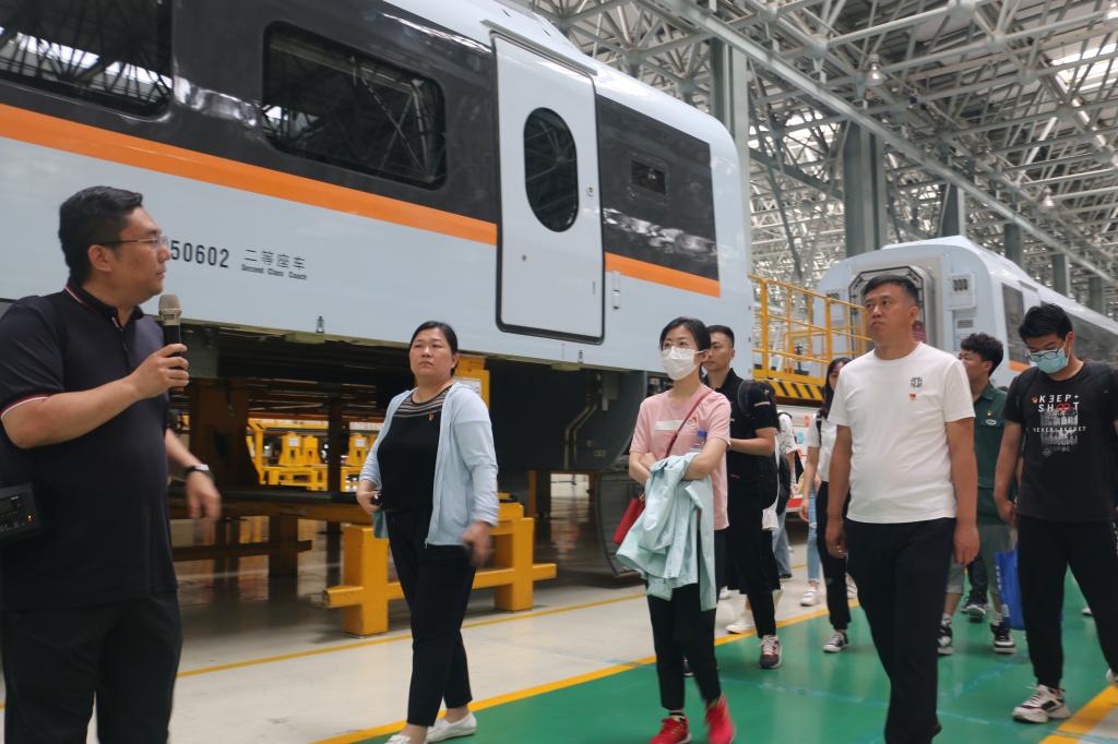 走进生产车间,在负责人的讲解下,师生们了解了中国高铁艰苦曲折的发展历史和筚路蓝缕的开创精神。