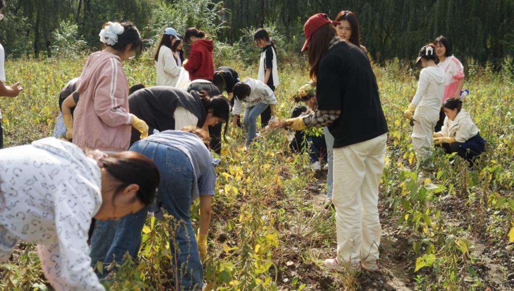 在实践基地,同学们在指定的耕地区域积极听从学院老师的指挥调度,井然有序地戴上手套,清理耕地里的杂草。大家协同配合、相互鼓励,以高效的方式完成了土地清理工作,为未来的农作物种植贡献了宝贵的劳动力量。这一经历不仅锻炼了大家的意志,更磨砺了他们的品质,使他们在劳动中实现了成长与进步。