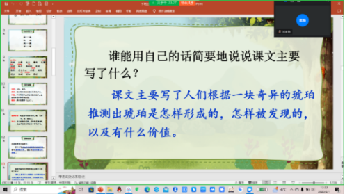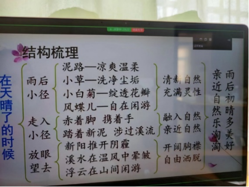 我这次的任务是给四年级的小女孩天月辅导语文。虽然不是第一次给小朋友讲课,但是这次“学伴+”辅导活动不同于常规线下的辅导,我需要借助会议软件以直播的形式进行授课,这对经验不多的我是一个挑战。说实话,在正式授课前,我内心是十分忐忑的:如果天月对网课不感兴趣怎么办?没有课堂氛围天月注意力不集中怎么办?万一我讲解知识点的方式不被接受怎么办……于是我在各大网络平台查找并观看了许多备权威的授课视频,借此学习怎样将知识点讲解得通俗易懂,思考怎样互动能够可以让课堂更有趣一些。同时,我按照教材的单元顺序认真备课,借阅名师教案并在授课过程中搭配符合同学年龄的课件进行知识点讲解。