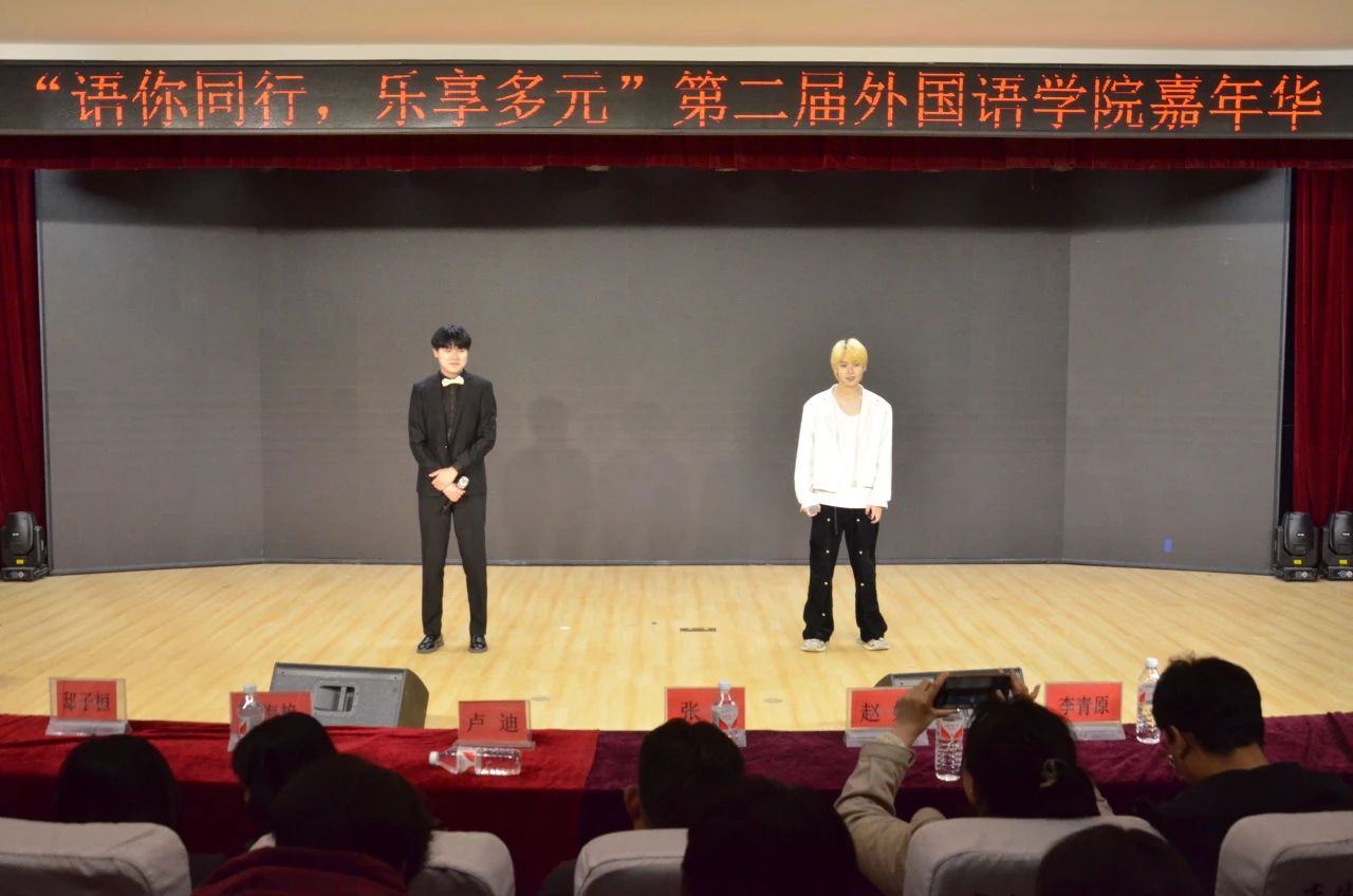 为了丰富澳门十大网投平台排行学生的课余生活,激发学生的外语学习兴趣,澳门十大网投平台排行于2025年4月22日晚在第一教学楼1101教室举办第二届外语嘉年华活动。本次活动以“语你同行,乐享多元”为主题,通过丰富多彩的才艺展示和趣味互动环节,为同学们搭建了展示语言才华、促进文化交流的舞台。