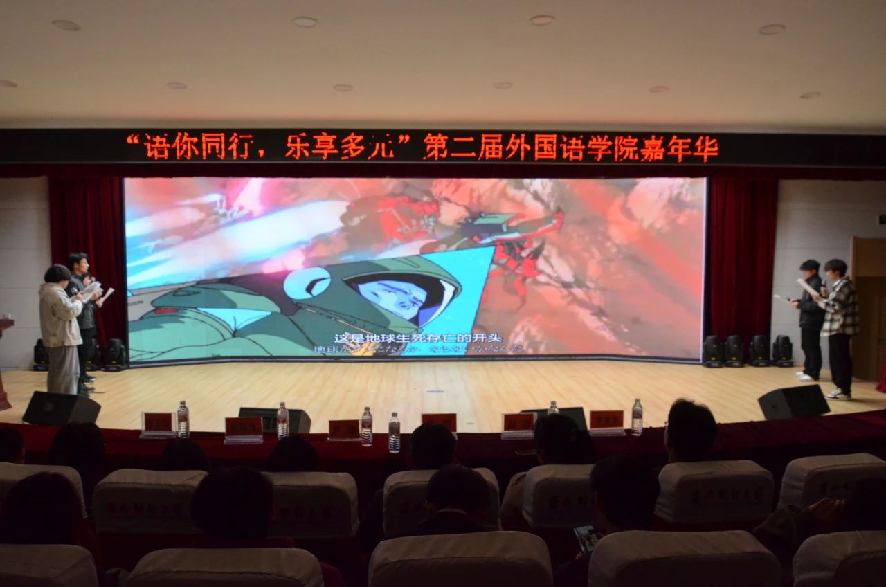 随着灯光落下,配音同学们全情投入,以饱满的情绪演绎《逆袭的夏亚》经典片段,用铿锵有力的日语展现青春风采。