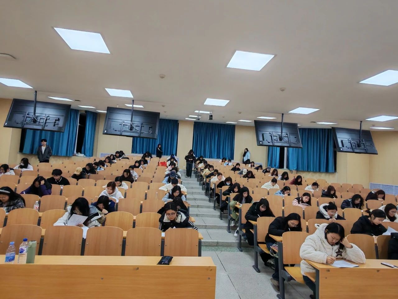 初赛结束后,团委工作人员有条不紊地收取并整理试卷、答题卡,于现场集中开展批改与评分工作,严格依据既定标准,按照参赛选手的卷面成绩进行排名。