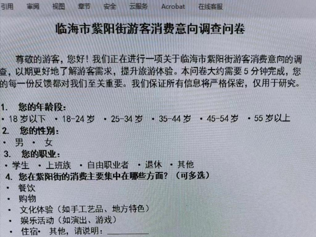 在深入调查了临海市紫阳街游客的消费意向后,我不仅对这条历史悠久的古街有了更深的理解,也对旅游消费市场的复杂性和多样性有了更直观的认识。这次调查,不仅是一次数据的收集与分析,更是一场关于文化、商业与人情世故的深刻体悟。