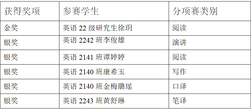 英语系学子在省赛中取得优异成绩,体现出专业学生的能力素养,展现专业教学成果,打造赛教融合育人模式,助力培养有家国情怀、有全球视野、有专业本领的国际化高层次、复合型外语专业人才。