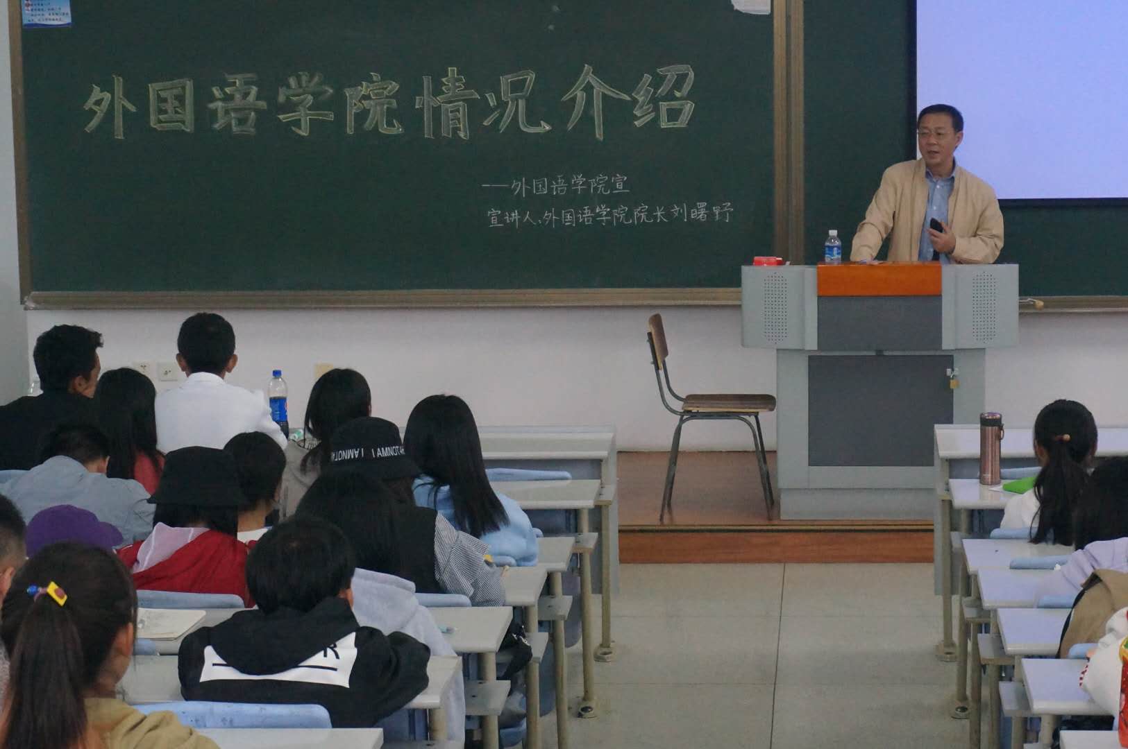 入学教育展开中期,我院党总支书记樊征宇书记召开以“怎样过好大学生活”为题的主题会议。樊书记围绕新生走进大学校门以来面临的困惑及应对措施展开此次会议讨论。此外,我院辅导员续成林老师围绕“角色转换”开展主题教育;各语系专业老师对入学新生进行专业学习指导。学习、生活等多方面的辅助施教促进我院新生平稳有效得融入大学生活。