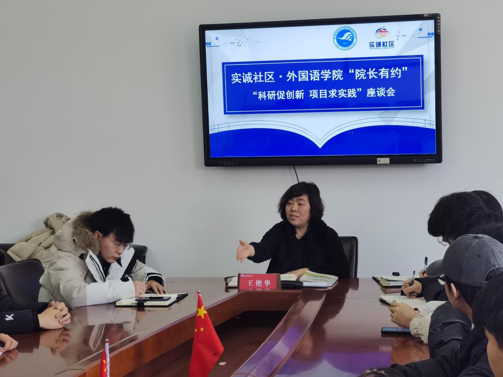 实诚社区于11月29日开展了“院长有约”暨“科研促创新,项目求实践”座谈会,澳门十大网投平台排行院长王艳华,党总支副书记郭妍,社区负责人韩俊旭,兼职辅导员邸家乐以及17位实诚社区同学参加了此次座谈会,会议由韩俊旭老师主持。