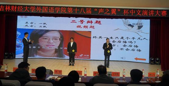选手们根据事先抽签决定的顺序进行辩论演讲。选手们在四轮辩论环节中展现了自己的临场应变能力,以缜密的逻辑和强烈的感染力展示出了各自的思考与态度。选手们灵活的临场反应能力、组织能力及过硬的心理素质,赢得了现场观众一次次热烈的掌声。