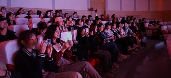 社团部成员们为现场观众表演了歌舞《爱人错过》和《失恋阵线联盟》,与观众们进行了亲密互动,伴随着欢快的旋律和台上同学激情四射的表演,同学们都纷纷拿出手机记录这一欢乐的时刻,现场气氛达到了高潮。